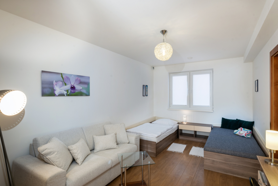 Dvojlôžková izba s oddelenými posteľami, rozkladací gauč, terasa, samostatná kúpeľňa